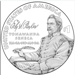 On November 26, 2021 the United States Mint officially released the design for the new 2022 Native American dollar coin.The new coin commemorates Ely S. Parker, a tribal diplomat who was also an engineer and a U.S. Army officer. Parker served as a military secretary to Ulysses S. Grant during the U.S. Civil War. When Robert E. Lee surrendered at Appomattox, VA on the morning of April 9, 1865, Parker rendered the formal surrender documents in his own hand.